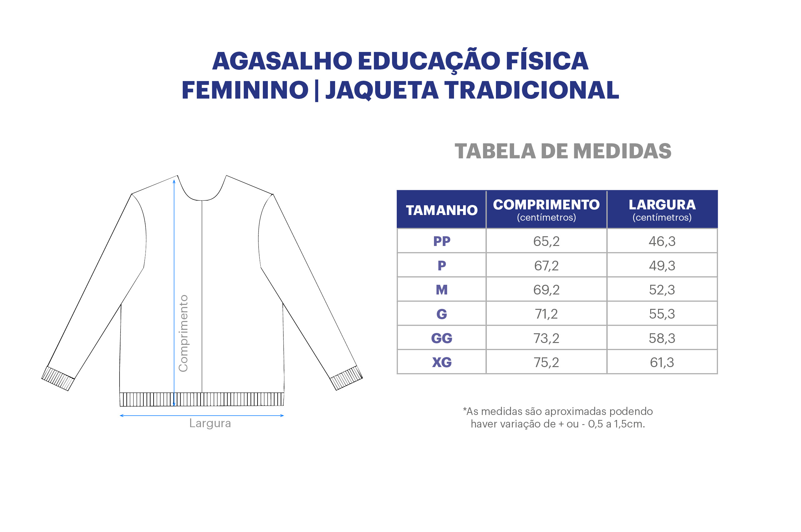 O agasalho une conforto, funcionalidade e identidade institucional, sendo uma opção versátil e representativa para estudantes e profissionais da área de Educação Física.