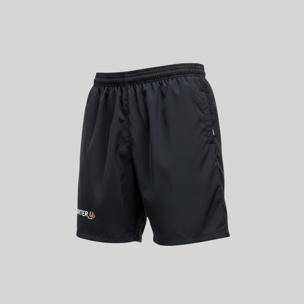 Na parte frontal, a bermuda possui a logomarca da Uninter aplicada de forma discreta, garantindo identidade institucional. O design foi desenvolvido para oferecer liberdade de movimentos e conforto, sendo uma peça funcional e versátil para o dia a dia acadêmico e esportivo.