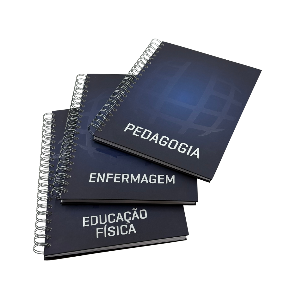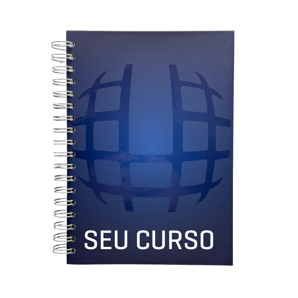 Com 200 folhas, garante amplo espaço para planejamento, reuniões e anotações. Seu design é exclusivo: na capa frontal, o caderno é personalizado com o globo Uninter e o nome do seu curso, enquanto a contracapa apresenta a logomarca Uninter, reforçando a identidade institucional.