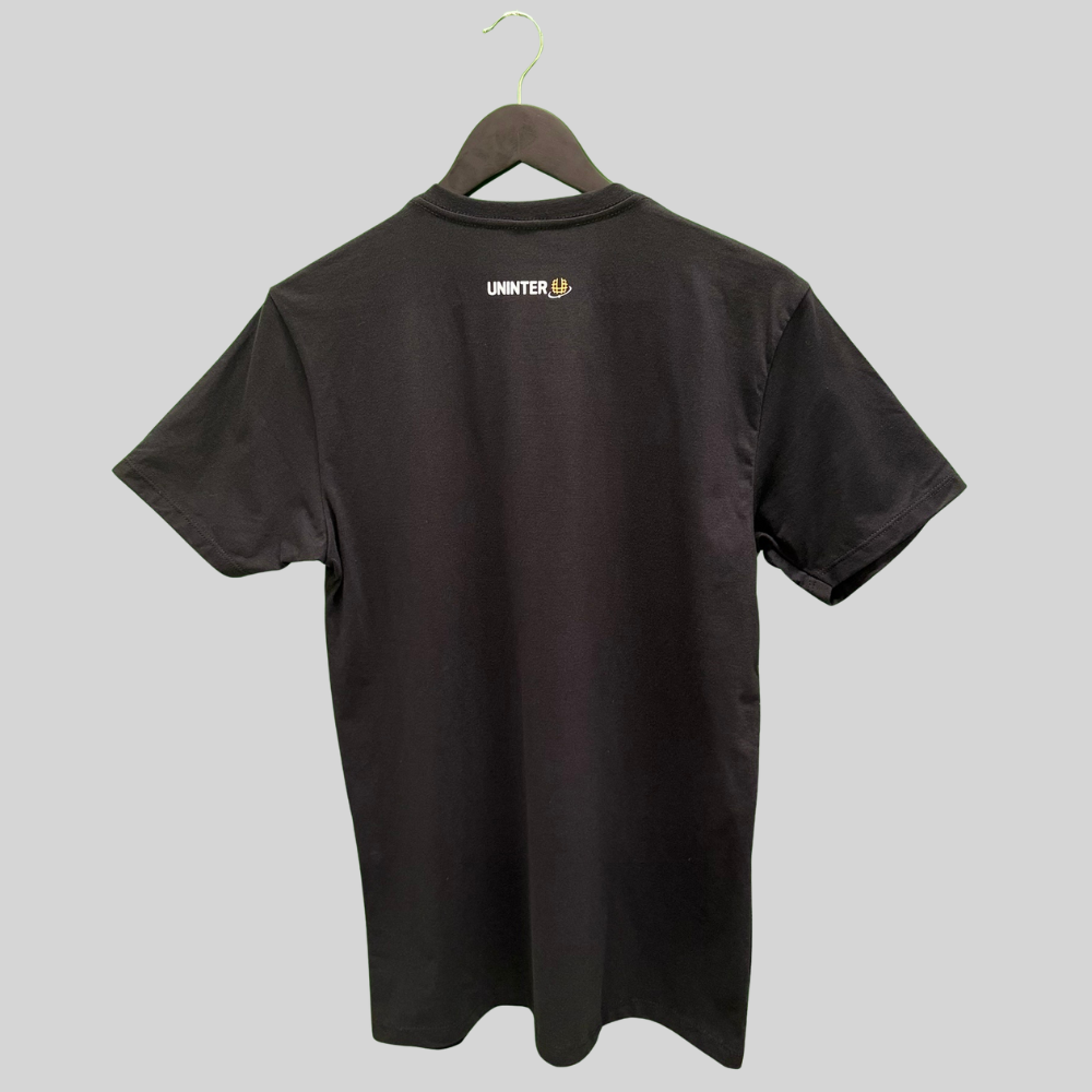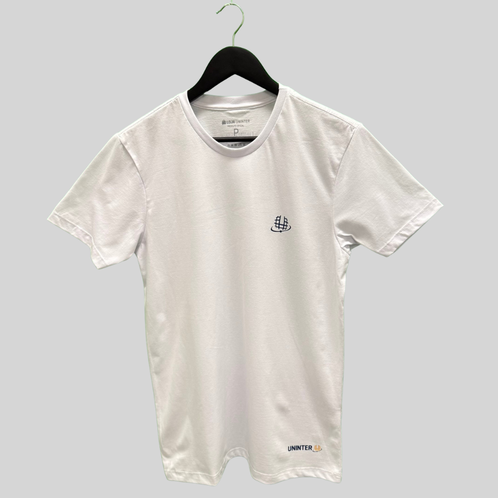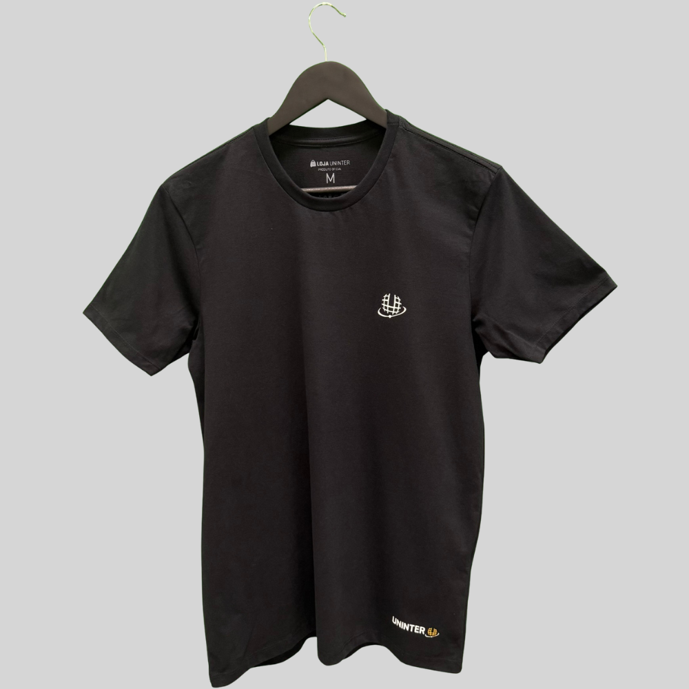 Na parte frontal, conta com o Globo Uninter minimalista posicionado no lado superior da peça, enquanto a logomarca da Uninter está impressa no canto inferior esquerdo. Na parte traseira, a camisetas também apresenta a logomarca da Uninter, localizada no canto superior.