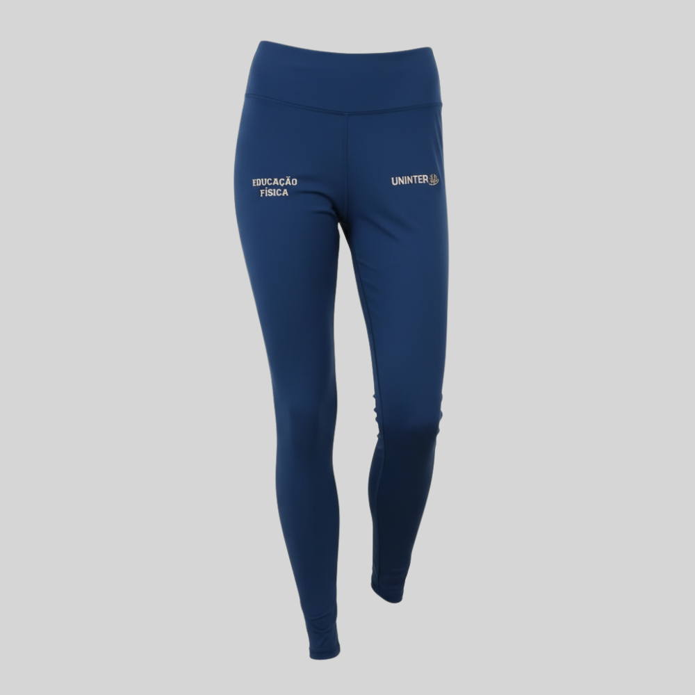 Na parte frontal, a peça conta com a logomarca da Uninter acompanhada do nome do curso de Educação Física, garantindo identidade institucional. O design foi desenvolvido para oferecer conforto, sustentação e segurança durante a prática de atividades físicas, tornando a legging ideal para uso acadêmico e esportivo.
