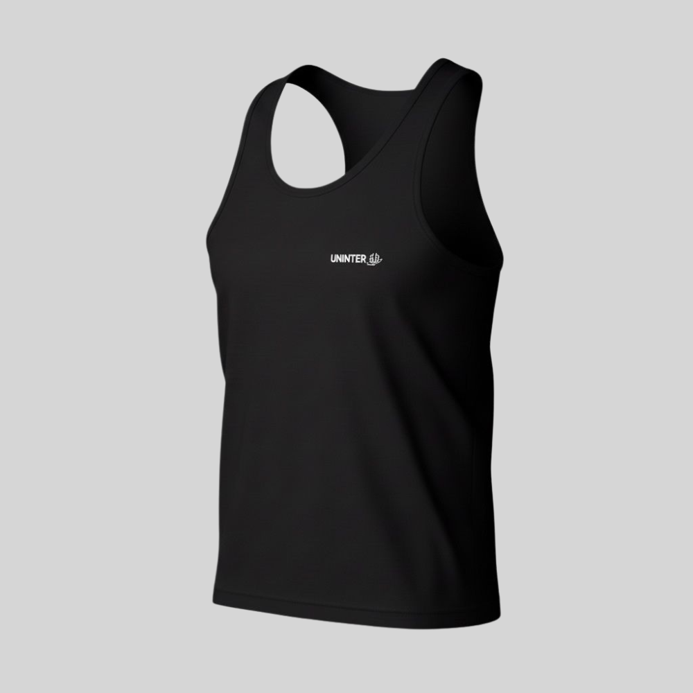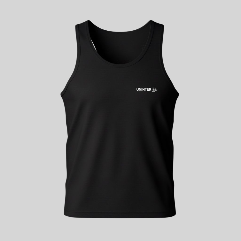 A Regata Uninter Masculina é caracterizada por não ter mangas, proporcionando uma maior liberdade aos movimentos e sendo mais usada nos períodos de calor. É produzida com uma malha confortável 100% algodão na cor preta, com tamanho variando de P até GG. A logomarca da Uninter é impressa no lado superior esquerdo da peça.